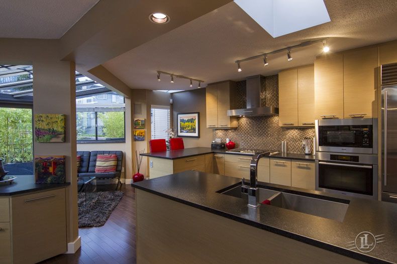 The perfect location to enjoy everything Dundarave’s Golden Mile has to offer. This 2,500 sqft, updated multi-level split ½ duplex boasts Maple hardwood floors throughout, lots of skylights & picturesque windows offering lots of natural light! A perfect space for entertaining featuring gourmet kitchen with custom cabinetry, state of the art Miele & Sub Zero appliances, granite countertops & eating area, adjoining dining, family room & patio. Separate living area level with dramatic fireplace that opens out onto a sun-deck with automatic awning that overlooks the stunning ocean & harbour views. The main floor; large, private master suite on its own level with fireplace, en-suite bathroom & walk-in closet & 2 other separated bedrooms with built-in wall beds. The lower level offers a rec room & wine cellar. Ultra lush beautifully landscaped garden oasis surrounded by mature vegetation, paving stone patio & hot tub! Double garage & South facing property. A superb no strata fee/council alternative to condo living for those who are looking to downsize with everything one could ask for: style, views & location-location-location!